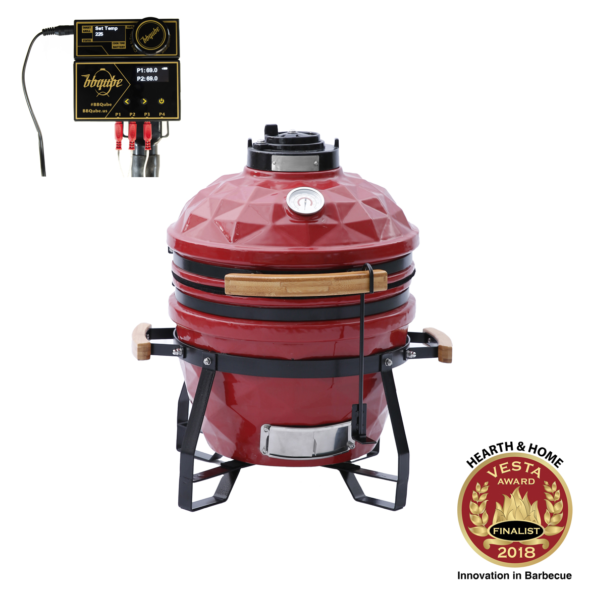 品牌 慢烤大师 型号 BBQ-KMD-15 温控 TempMaster Portable BLE 材料 高温陶瓷 颜色 亮釉红色,亮釉黑色 尺寸 15"*22"/38*56CM 烹饪面积 133 Sq in / 858cm² 烤盘直径 φ13”/ 33cm 重量 36KG 包装尺寸 50x45x57cm 适用人数 2-6人